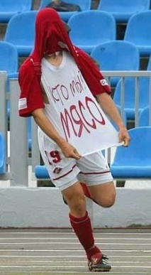 Традиция наносить на майки подобные самоидентифицирующие надписи появилась благодаря Егорию Титову, который в октябре 2001-го после забитого мяча в ворота "Зенита" (3:1) первым гордо явил миру своё мясное естество:
