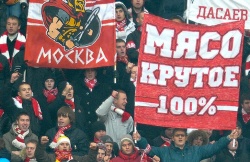 Современные фанаты "Спартака" также весьма активно используют "Мясо" в своих зарядах: